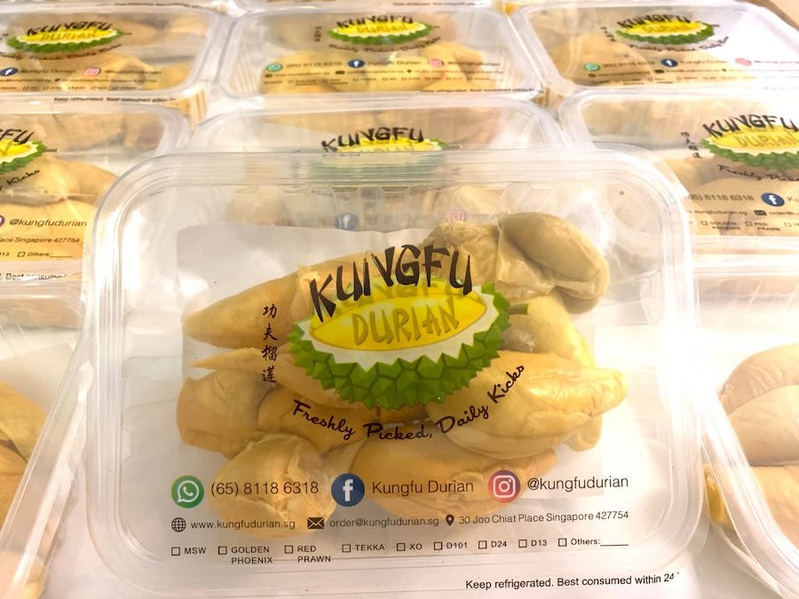 Kungfu Durian is known for its unique branding and friendly service. They source durians from Pahang and Johor. Their service is fast, and the packaging is neat enough for delivery.