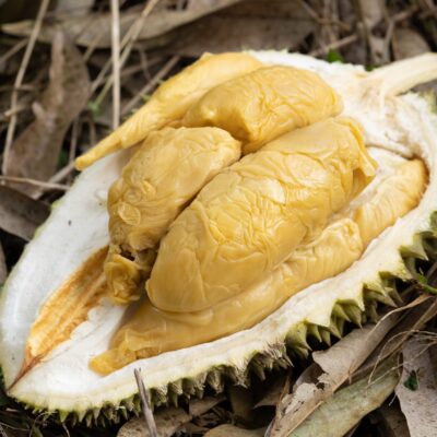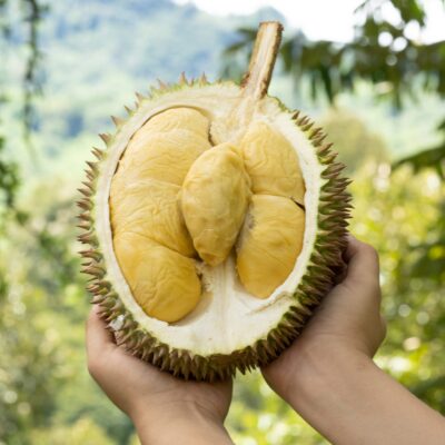 Yuan Bao Durian, also known as Ingot Durian, is a prized hybrid variety developed in Malaysia in the early 2000s. characterized by large, oblong fruits with thick spikes. This highly sought-after durian is one of the world’s most expensive varieties, reaching prices up to $100 per kilogram.